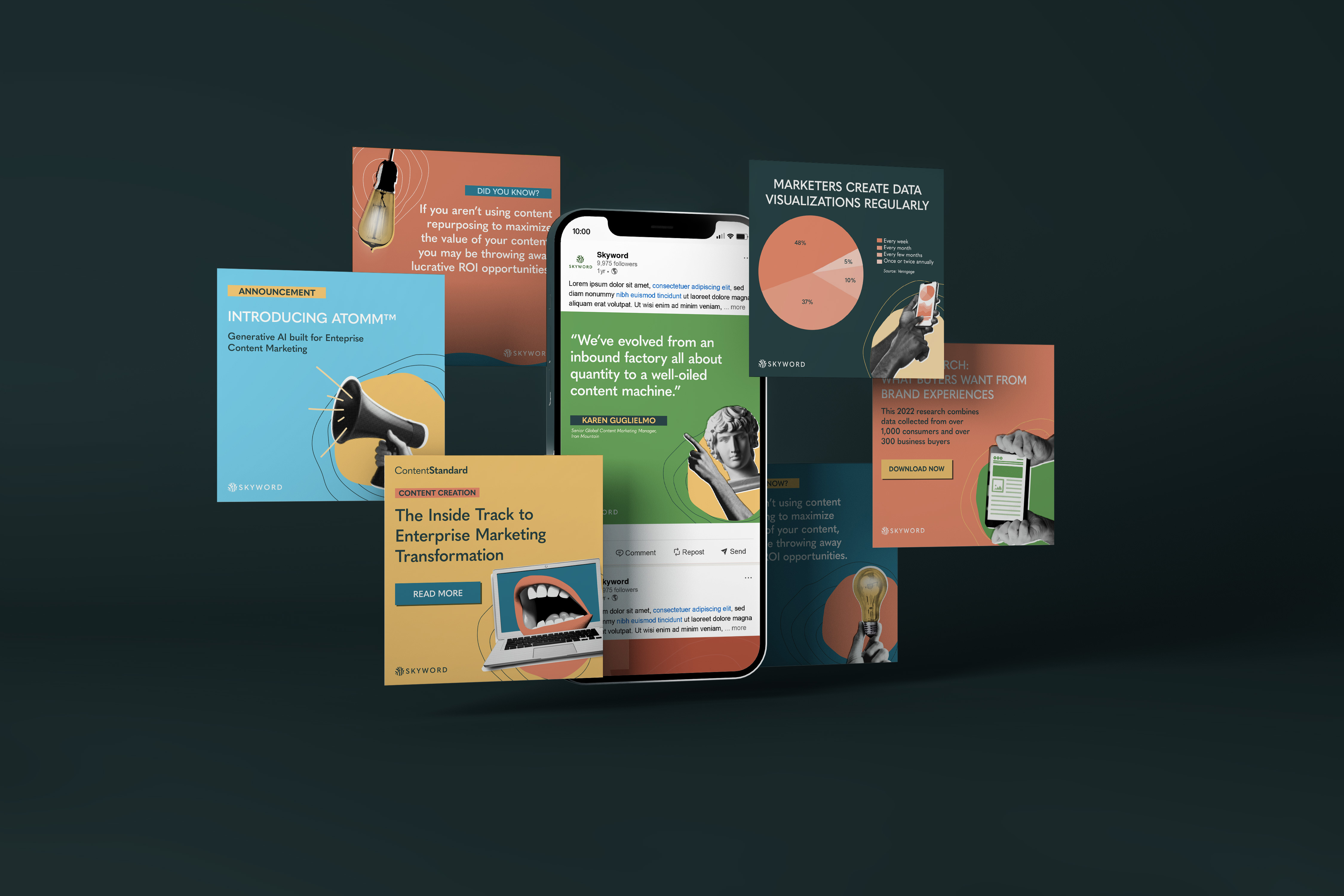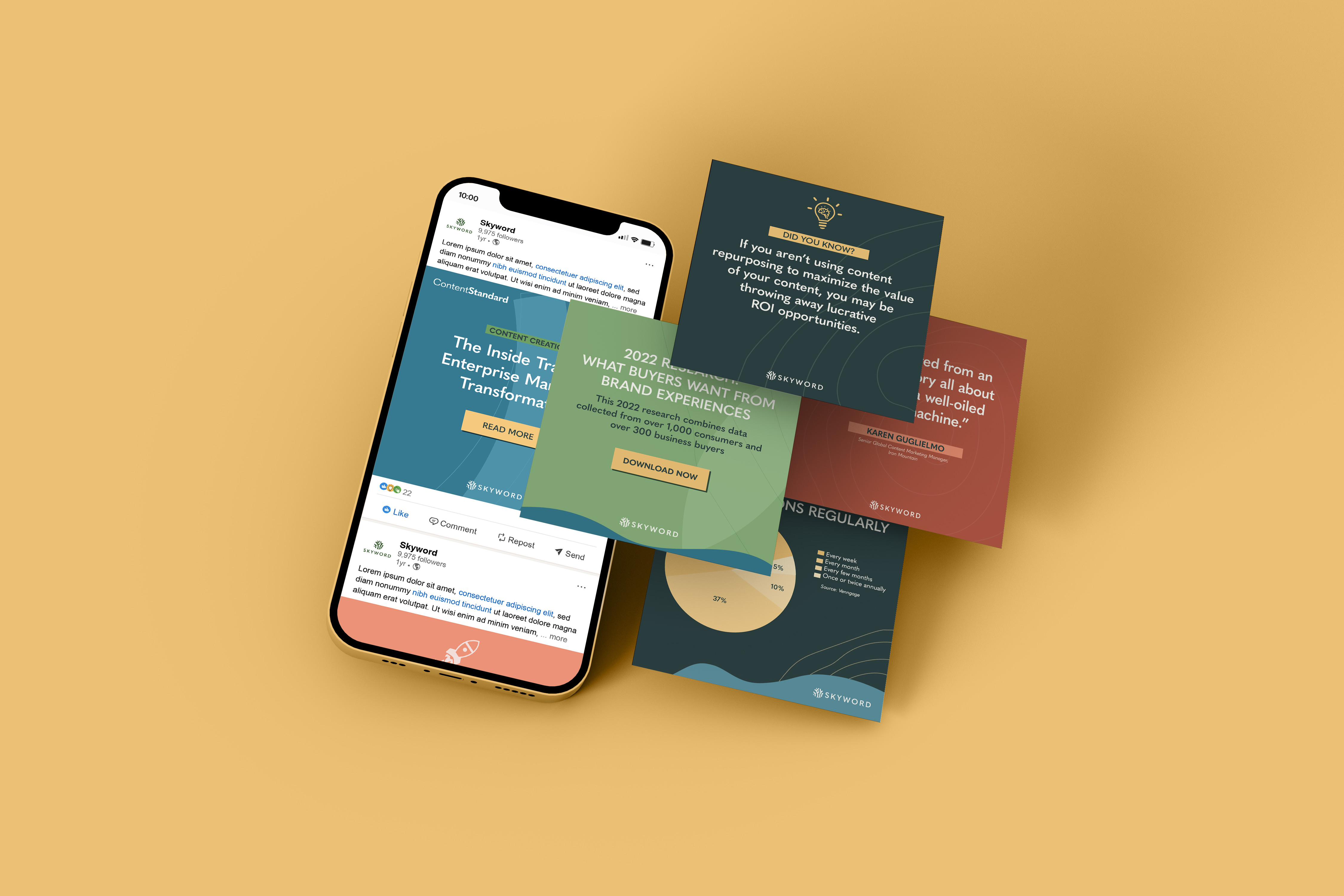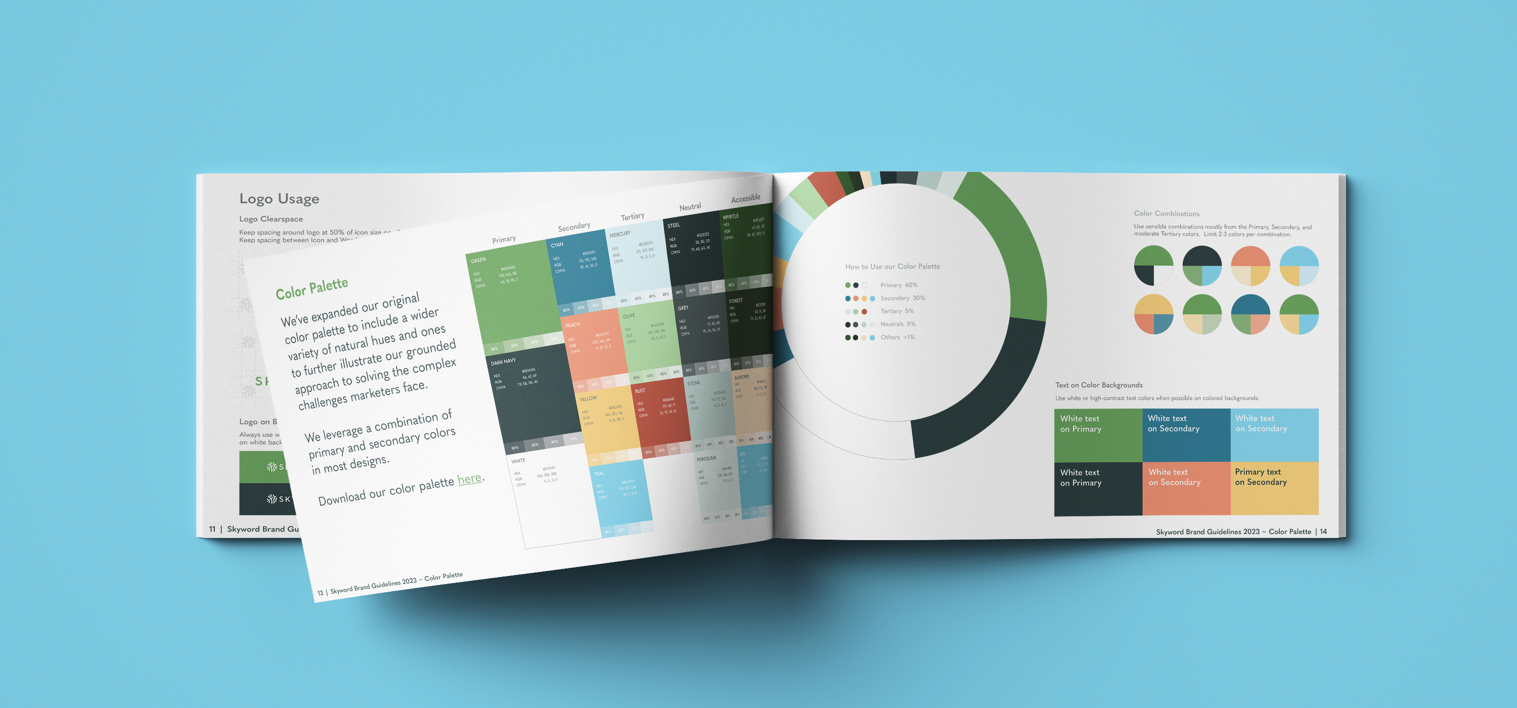 Skyword Marketing was looking to elevate their brand marketing overall style through a centralized digital brand guideline book and to create net new branded templates for ease of usage. The assets needed to have their templates be on point with quality content and design at the forefront.